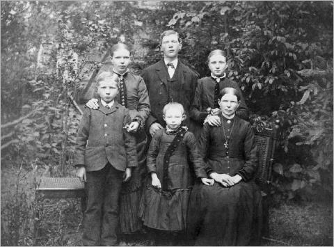 v.l.n.r.: Gerhard Brörmann, * 1876, Margaretha Lisette Brörmann, * 1870, Anton Brörmann, * 1868, Bernardina Brörmann, * 1879, Elisabeth Brörmann, * 1872, Catharina Brörmann, geb. Schulte, * 1842