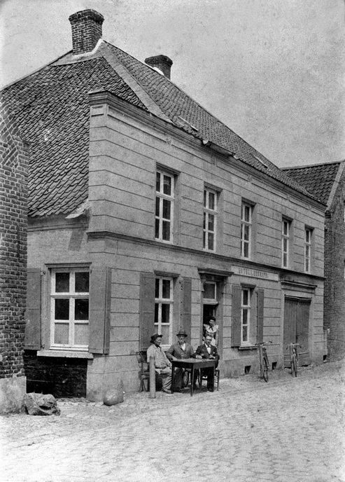 Arnoldus Hermans (ganz links) mit Freunden vor dem "Hotel A. Hermans" in Arcen