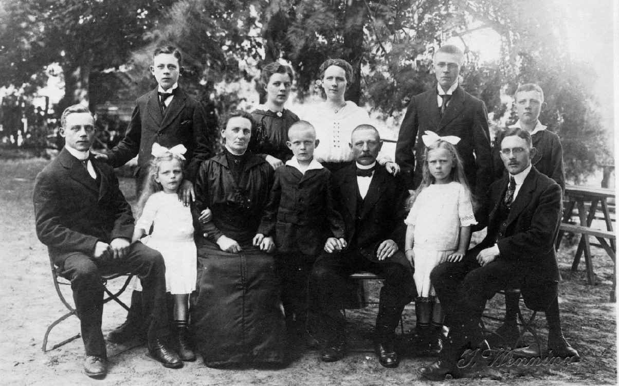 Familie Heinrich Schnermann und Anna Ostrick 1905: v.l.n.r.: Johanna, Adolf, Anna Schnermann, geb. Ostrick, Franz, Josef, Alois, Heinrich Schnermann, Heinrich, Elisabeth